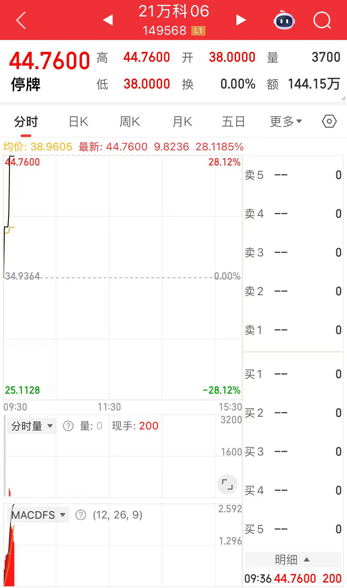 1月16日,深交所公告,“21万科06”(149568)盘中成交价较前收盘价首次上涨达到或超过20%,深交所自今日09时36分27秒起对该债券实施临时停牌,于10时06分28秒复牌。